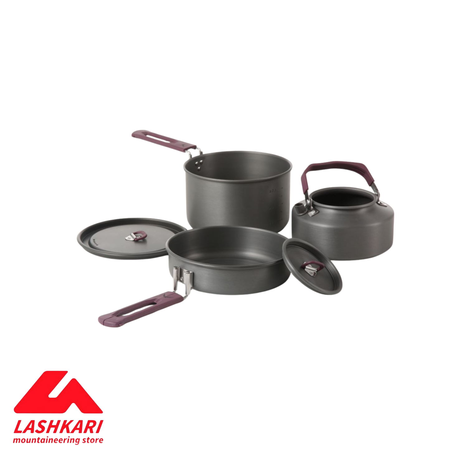 | شامل اقلام | ۱ قابلمه بزرگ، ۱ قابلمه کوچک، ۱ ماهیتابه، ۲ عدد کاسه، ۱ عدد قاشق ملاقه، ۱ عدد کفگیر، ۱ عدد درب مشترک، ۱ عدد کاور حمل |